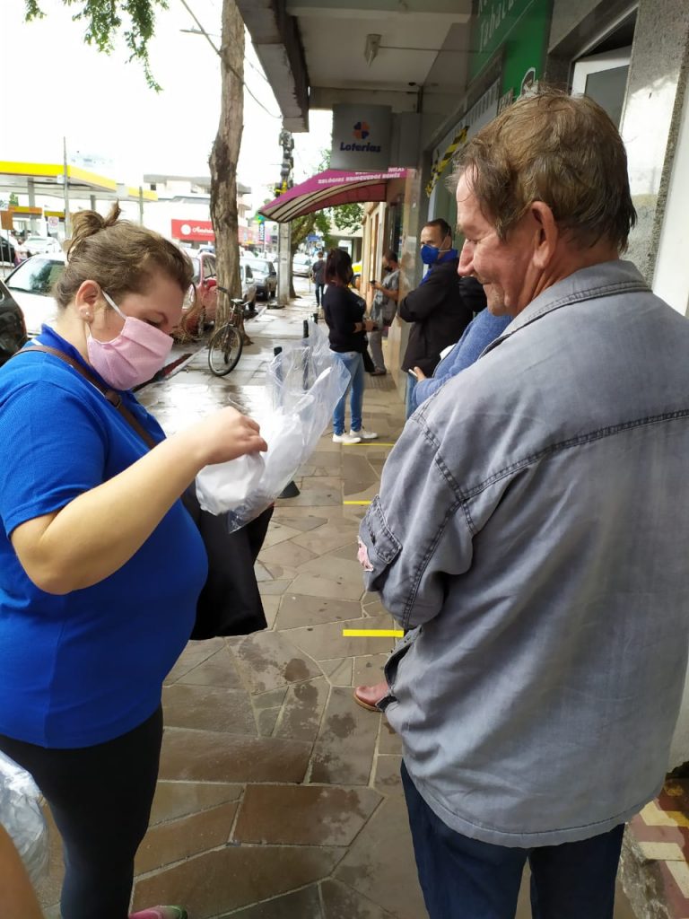 Durante o primeiro dia de distribuição, milhares de peças foram entregues às pessoas que circulavam sem proteção na área central da cidade. Em oito locais com movimento mais intenso de pessoas – paradas de ônibus, supermercados, rodoviária, na frente dos bancos, além de um drive-trhu montado em parceria com a Escola do Chimarrão na Praça Evangélica –, agentes de saúde fizeram a entrega das máscaras adquiridas pela Secretaria Municipal de Saúde com os ateliers e costureiras locais, além de centenas de unidades recebidas de doações. Na ocasião, as servidoras aproveitaram para explicar a forma correta de utilização e de esterilização do EPI.