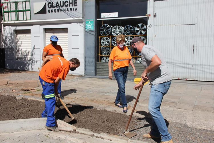 A prefeita Helena Hermany acompanhou o serviço sendo realizado nesta manhã. Helena disse ainda que a Prefeitura está dando celeridade ao processo de uma nova licitação para que o projeto do calçadão finalmente aconteça.