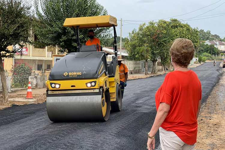 A primeira camada de asfalto começou a ser colocada na manhã desta quinta-feira, 15. A prefeita Helena Hermany acompanhou os trabalhos ao lado de Vargas, do presidente do hospital, Carlos Alberto Brand, e dos diretores da instituição, Gilberto Gobbi e Sandra Weiler.
