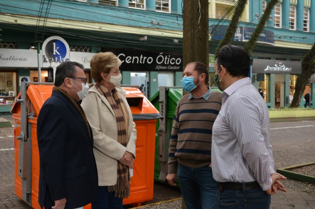 A Prefeitura de Santa Cruz do Sul, por intermédio da Secretaria Municipal de Meio Ambiente, Saneamento e Sustentabilidade (Semass), lançou na manhã desta quarta-feira, 9, na Praça Getúlio Vargas, o Projeto Recicla Santa Cruz, em parceria com a Conesul Soluções Ambientais. Em uma fase de testes, quatro contêineres, na cor laranja, estão sendo instalados em pontos estratégicos da região central da cidade, exclusivamente para o descarte de materiais recicláveis.