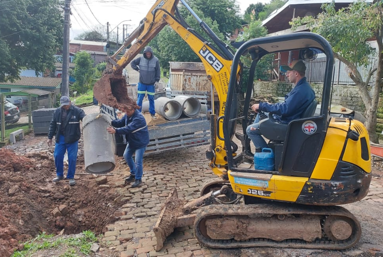 Na obra, serão utilizados dois canos, além de uma carga de base, entre outros itens. Além disso, será refeita a calçada do trecho, com a colocação de aproximadamente 30 novos cordões para o meio-fio. Na Rua Conselheiro Oscar Gressler, no Bairro Aliança, uma equipe da secretaria também deu início ao trabalho de recuperação de canalização.