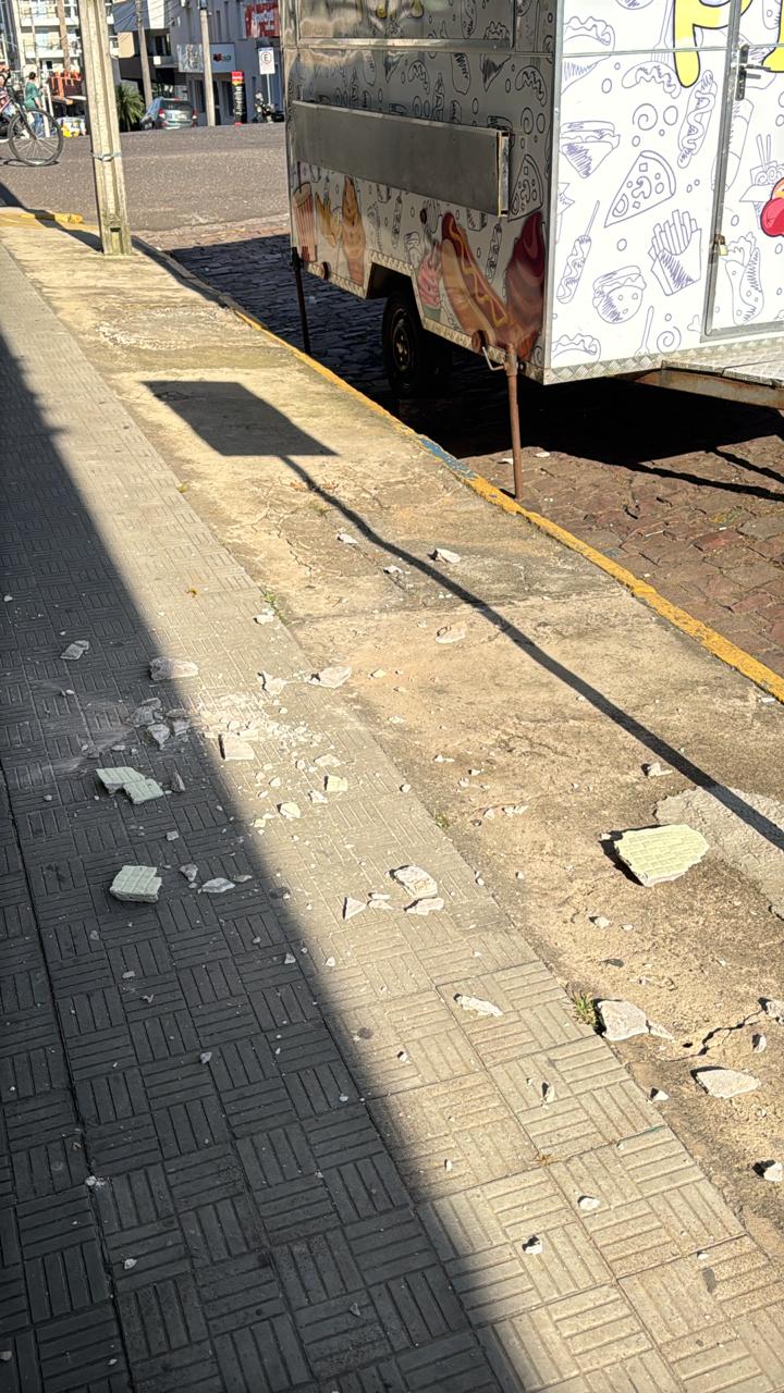 De propriedade do Governo Gaúcho, o imponente prédio na esquina das ruas Osvaldo Aranha com Barão do Triunfo foi casa, na década de 90, da extinta Caixa Econômica Estadual e atualmente abriga, no segundo pavimento, o escritório da Emater/Ascar. O Governo do Estado foi notificado da situação pelo Município e apresentou laudo técnico atestando a condição da estrutura. Mesmo assim, diante da queda de concretos nesta semana, o prefeito Jarbas da Rosa solicitou vistoria da Defesa Civil Municipal e reparos emergenciais na área.