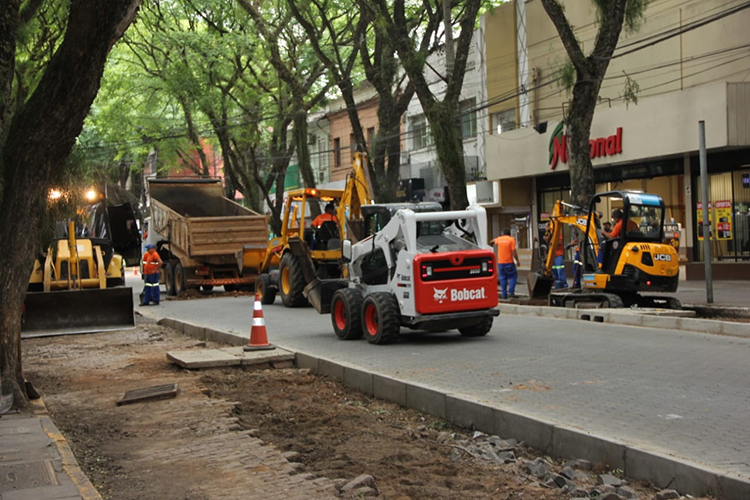 Máquinas e funcionários da Prefeitura tomaram conta da rua Marechal Floriano na manhã deste domingo, 24. Foi a primeira fase de um mutirão para melhorar as condições do calçadão. Na semana passada, a atual Administração Municipal rescindiu o contrato com a empresa responsável pela obra de ampliação e anunciou uma nova licitação.