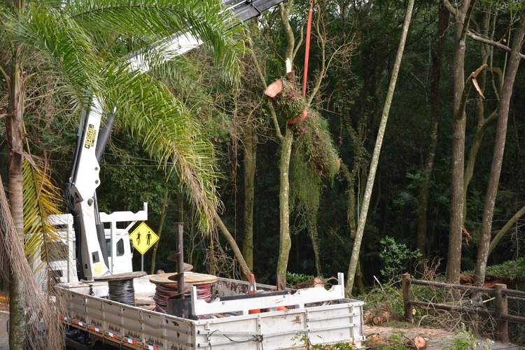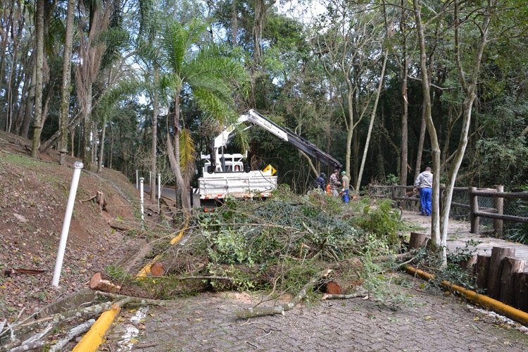 Uma equipe da Secretaria Municipal de Transportes, Serviços e Mobilidade Urbana fez a retirada de duas árvores que caíram no interior do Parque da Gruta, no último final de semana, quando o tempo foi marcado por chuva e vento.