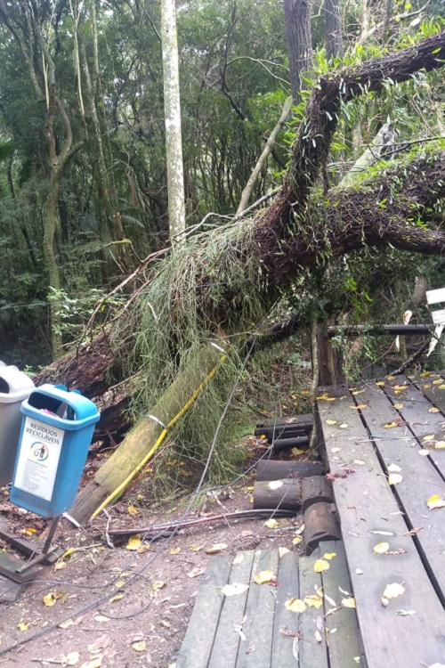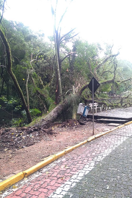 Já nesta quarta-feira, 27, a equipe da Central fará a remoção da segunda árvore, uma corticeira-da-serra, caída junto à área das churrasqueiras. Ambos os espécimes tinham cerca de 20 a 25 metros de altura. A queda das árvores foi informada à pasta pela Defesa Civil.