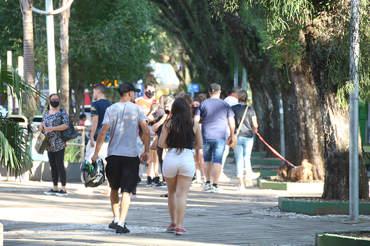 Mesmo diante das recomendações de distanciamento social e uso de máscara, muitas pessoas vão às ruas de Santa Cruz do Sul no fim de semana