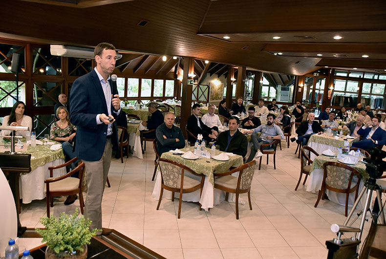 O evento Tá na Hora deste mês foi realizado nessa terça-feira, 17, pela Associação Comercial e Industrial (ACI) de Santa Cruz do Sul em parceria com o Sindicato das Indústrias da Construção Civil (Sinduscon-RS). O presidente da entidade sindical, Claudio Teitelbaum, foi o palestrante, tendo como pauta As perspectivas da indústria da construção civil no Rio Grande do Sul. Em sua fala, apresentou o desempenho do setor e apontou o que considera um entrave para o desenvolvimento local: o plano diretor restritivo.