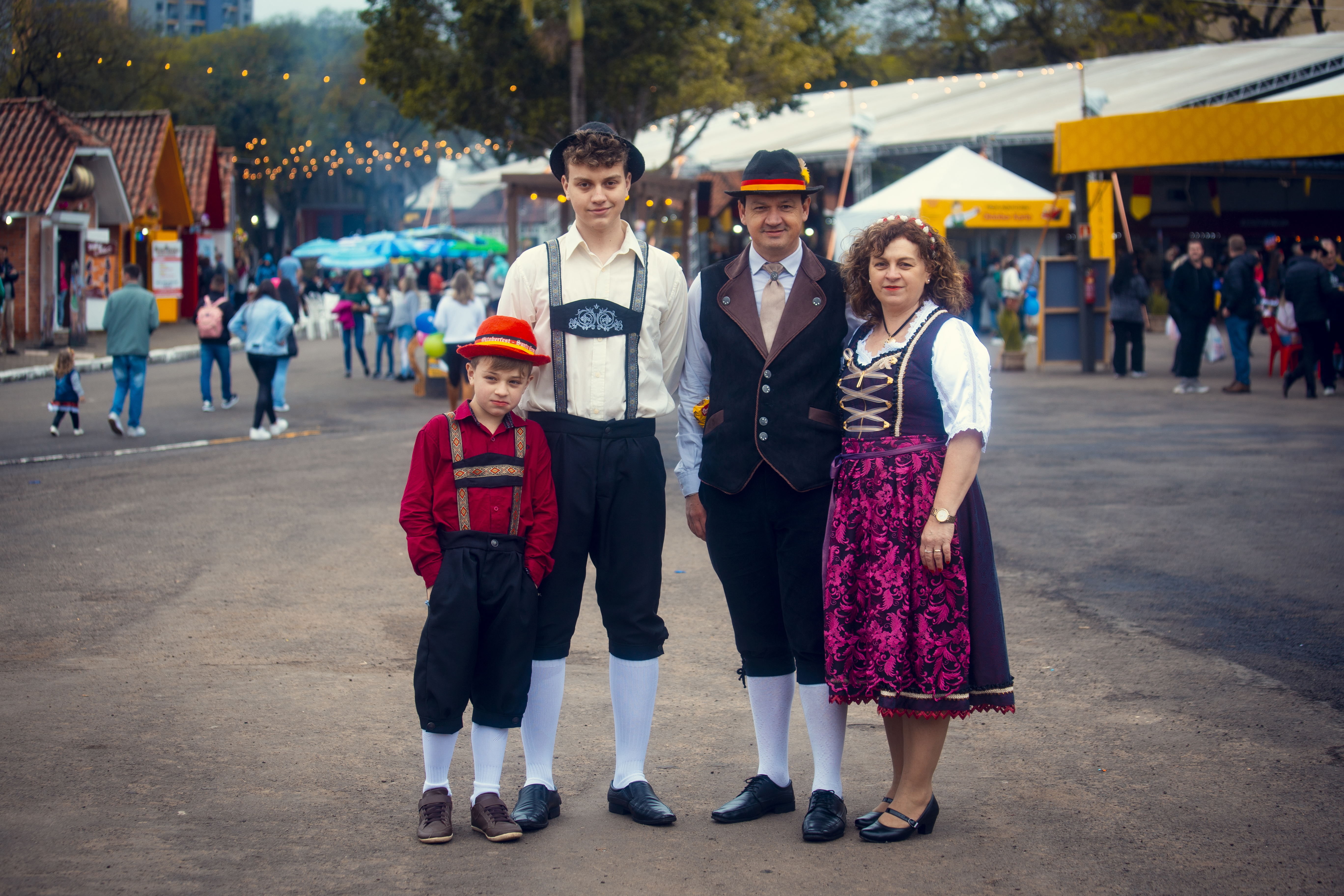 Entre os que resolveram encarar o mau tempo está a família Quinot, de Sinimbu. Pastores da Igreja Evangélica de Confissão Luterana do Brasil (IECLB), Jair e Glorinha foram com os filhos Walter e Gabriel, todos a caráter, com os trajes que relembram as vestimentas típicas. “Aproveitamos o tempo de folga e viemos. Como fazia tempo que não vínhamos, foi o momento certo”, afirma Jair.