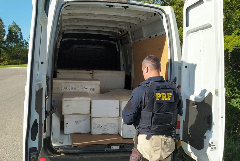 A Polícia Rodoviária Federal apreendeu aproximadamente 750 quilos de pescados sendo transportados sem os devidos protocolos sanitários. O flagrante aconteceu na tarde deste sábado, 1º, na BR-290, em Pantano Grande, quando os policiais abordaram um Renault Master, emplacado em Lajeado