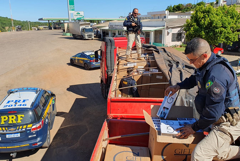 A carga de cigarros, estimada em cerca de um R$ 1,2 milhão, e o caminhão, que vale aproximadamente R$ 500 mil, foram apreendidos e, assim como o contrabandista, conduzidos à Polícia Federal de Passo Fundo.