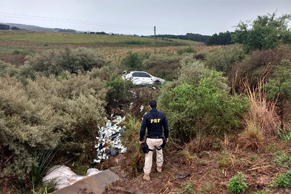 De acordo com a PRF, depois de andar alguns quilômetros, o homem de 46 anos, natural de Dom Pedrito, perdeu o controle do carro e saiu da pista. Os policiais encontraram os agrotóxicos no porta-malas e parte da carga ficou espalhada próximo a um córrego. O homem foi encaminhado ao hospital e depois à Polícia Federal de Bagé. Agentes da PF apoiaram a ação.