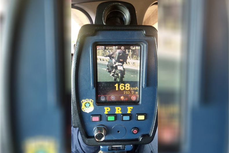 Na tarde desse sábado, 29, em duas horas de fiscalização, a Polícia Rodoviária Federal (PRF) flagrou 75 motoristas desrespeitando o limite máximo de velocidade na BR-386, no trecho entre Montenegro e Nova Santa Rita. Em uma das imagens captadas naquele dia, um motociclista foi flagrada transitando a 168 quilômetros por hora. Por ser acima de 50% da velocidade máxima regulamentada para o local, além da infração de trânsito, com anotação de sete pontos na habilitação e multa no valor de R$ 880,41, o motorista também responderá a processo para suspensão do direito de dirigir.