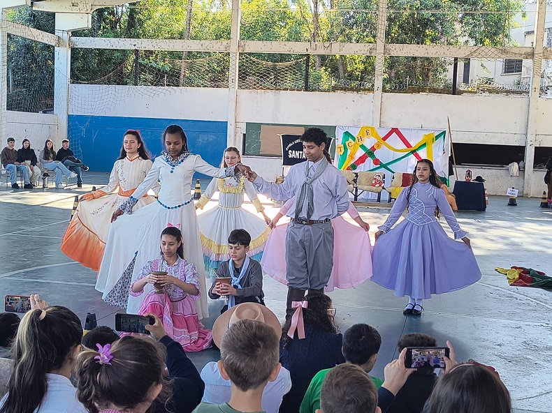 A abertura oficial da Semana Farroupilha na escola contou com um clima festivo. Além do recebimento da chama, apresentações de danças gaúchas foram realizadas pelo grupo do próprio colégio e pelo CTG Rincão da Alegria.