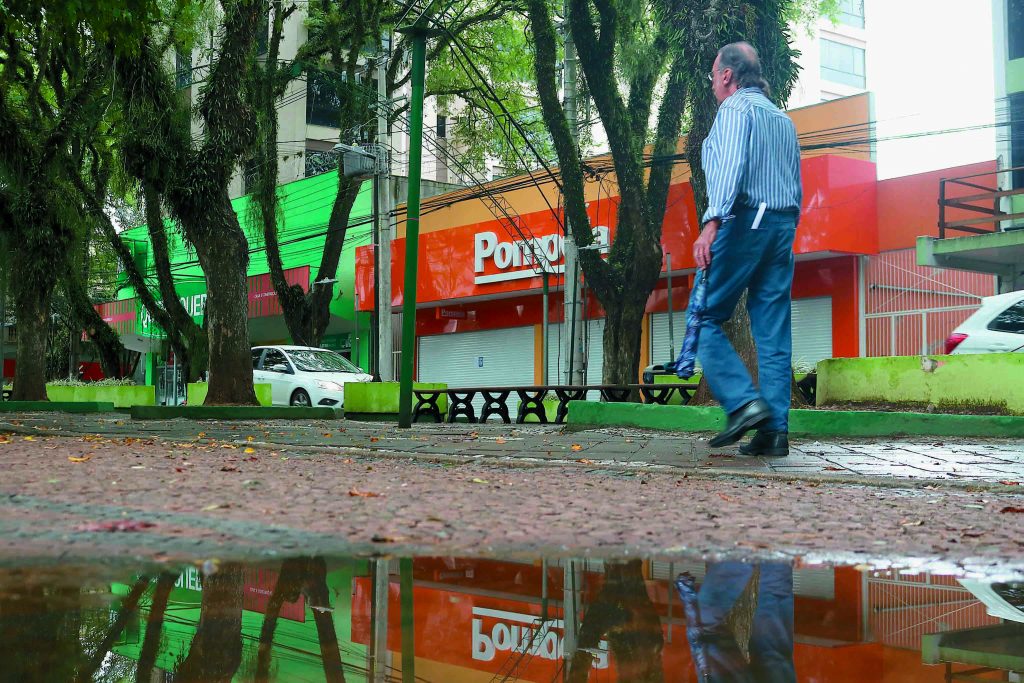 O servidor público Airton Jacobi teve que pedir um guarda-chuva emprestado para a sua esposa. Ele precisou quebrar o isolamento social para resolver uns problemas no Centro e teve de carregar consigo o objeto, há muito esquecido. “Eu nem sei onde foi parar o meu, faz tanto tempo que não se usa guarda-chuva”, brincou Jacobi.