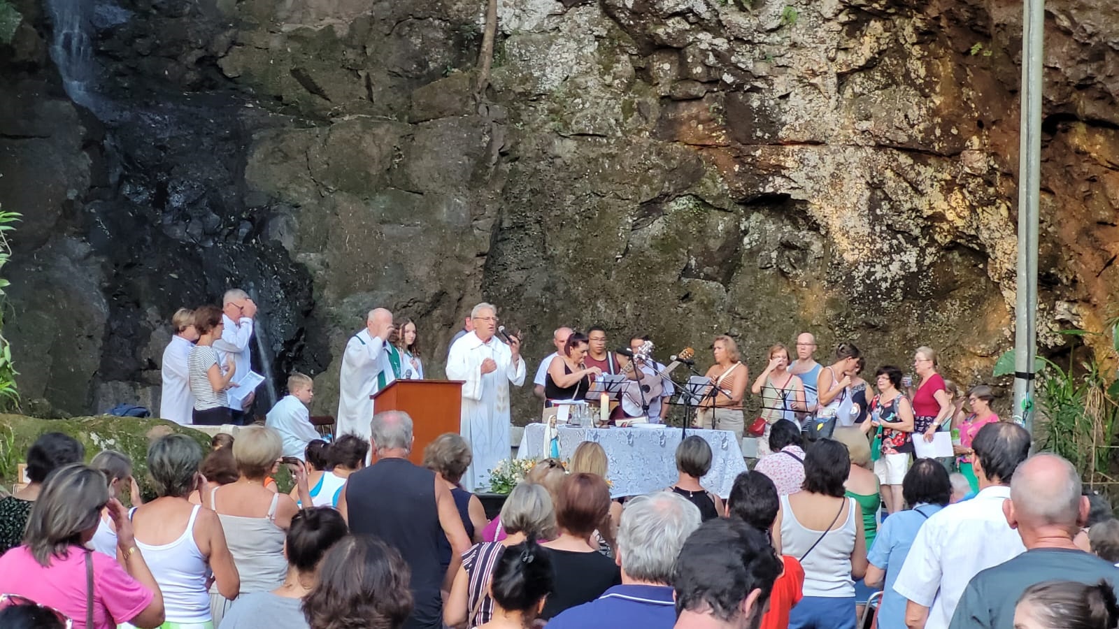 A tarde de sol e calor intenso não foi empecilho para a realização da Procissão de Nossa Senhora de Lourdes, promovida pela Comunidade Santo Inácio. Às 18 horas deste sábado, 11, os fiéis partiram da igreja em direção à gruta localizada em uma área verde próximo à Casa de Retiro Loyola. No local, o padre Antônio Puhl celebrou uma missa.