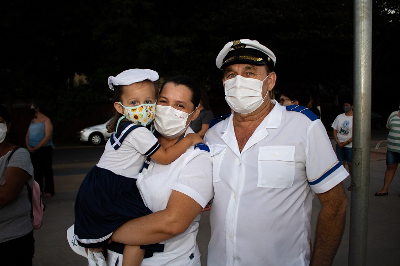 “Fui piloto fluvial e alcancei muitas graças com a Santa. Nas horas difíceis, ela sempre nos ajuda, tanto na água como na nossa família, em terra”, relata. Com Oliveira, sua esposa Susane Gonçalves e a neta Ágata, de apenas 2 anos, também estavam vestidas como marinheiras. “É o segundo ano que minha neta participa”, diz orgulhoso.