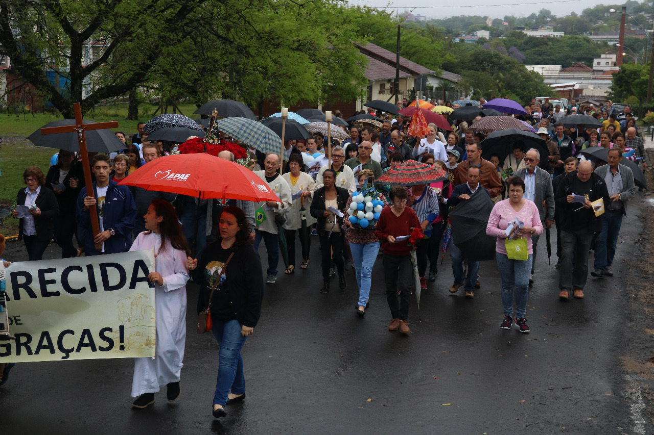 Os 300 anos da aparição de Nossa Senhora Aparecida foi celebrado na manhã desta quinta-feira, 12, por, pelo menos, 200 fieis no Bairro Esmeralda, em Santa Cruz do Sul. Nem a chuva impediu com que os devotos, inspirados pela fé, caminhassem 2,5 quilômetros entre as Igrejas Santo Antônio e Nossa Senhora Aparecida.