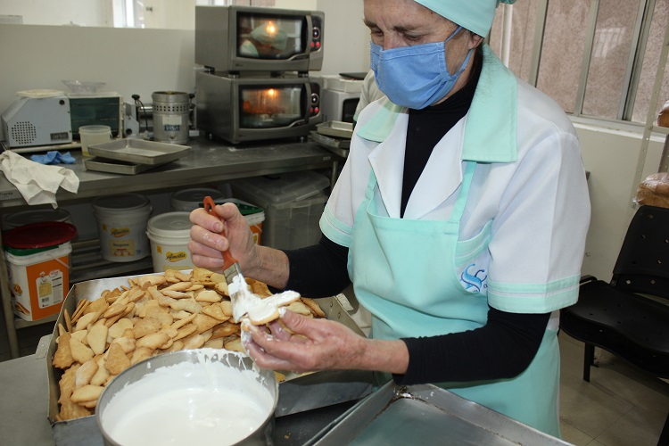 Quando Ilsi começou a trabalhar na padaria do HSC, há 38 anos, o costume de fazer biscoitos para os pacientes já existia em épocas de Páscoa e Natal. “A gente apenas deu continuidade”, revela. Neli, com 41 anos de HSC e 29 na padaria, ressalta que a prática é um ato de carinho pelos pacientes.