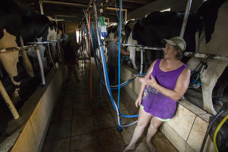 Para tirar o leite, a família trabalha unida e se divide nas tarefas. Marlise, o marido Flávio Luttjohann, 49, o primogênito Eduardo, 28, a nora Eliane Alice, 24, e a netinha Milene, 3, esperam na ordenha, toda automatizada, as vacas trazidas do campo pelo caçula André Luis, 17 anos. Eles seguem todas as normas de higiene e segurança. Outro indispensável no serviço, que leva cerca de uma hora, é o rádio, sintonizado na Gazeta, que, além de atualizar a família, segundo Marlise, também acalma as vacas e contribui para manter a boa qualidade do leite.