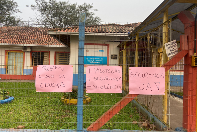Na manhã desta sexta-feira, 30, funcionárias da Emei realizam um protesto. “A gente se reuniu no nosso horário de trabalho, com 100% de adesão, para paralisar no dia de hoje, a fim de a gente ter visibilidade no nosso pedido de segurança dentro da escola”, destaca Fernanda. O secretário de Educação, Mário Colombo, esteve presente na manifestação com a equipe. A escola segue com as atividades paralisadas nesta tarde.