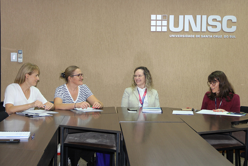 As professoras foram recebidas pela vice-reitora, Andreia Rosane de Moura Valim; pelo pró-reitor administrativo, Heron Sergio Moreira Begnis; pela coordenadora adjunta do PPGPS, Cézane Priscila Reuter; pelos estudantes do PPGPS, Letícia Welser e João Francisco de Castro Silveira; pela coordenadora da Assessoria Internacional da Unisc, Cristiana Veronica Mueller; e por Vitória Rocho, também da Assessoria Internacional da Unisc.