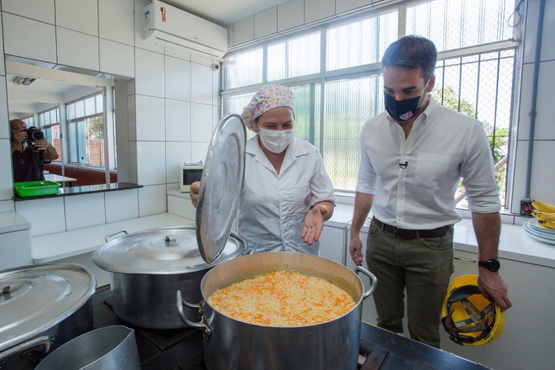 Escola tem 1,2 mil alunos: "é muito futuro, é muita responsabilidade", disse Leite ao destacar a importância da alimentação