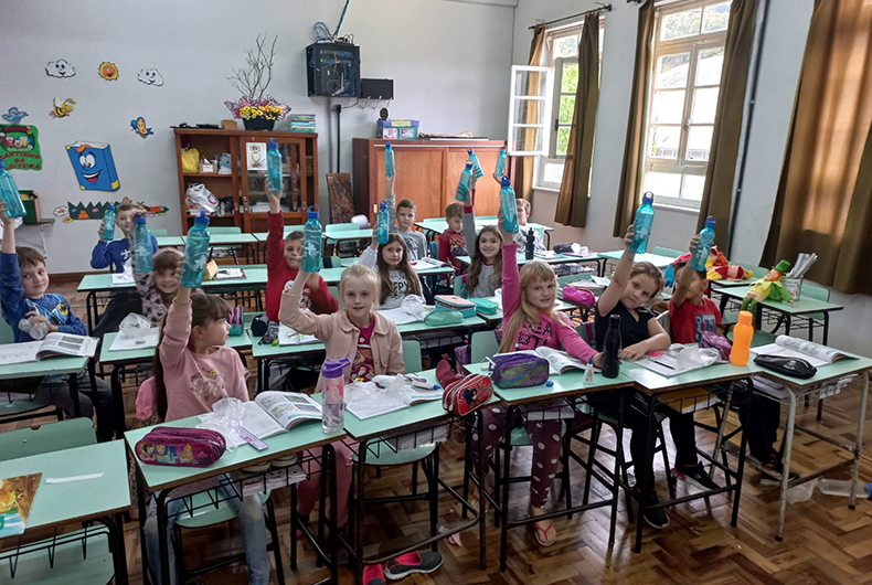 Os profissionais das secretarias de Educação, Cultura e Turismo e da Saúde e Bem-Estar Social de Sinimbu, em visita às escolas do município nos últimos dias, estão levando e efetuando a entrega de uma garrafa personalizada do Programa Saúde na Escola (PSE) para cada criança e adolescente matriculados na rede municipal e estadual.