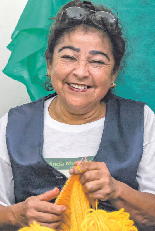 Yara Garcia de Oliveira também acompanha as oficinas do Cras Jardim Boa Vista e faz parte do Pontinhos de Amor há quase três meses, logo quando o projeto teve início. Ela já sabia tricotar, mas, por conta da vida corrida, tinha deixado a atividade de lazer de lado. Agora, quer aprimorar as técnicas. “É quase uma terapia. Gosto muito desse envolvimento, dos encontros e de descontrair com as amigas.” Além do convívio em grupo, Yara fala sobre a solidariedade. “Gostamos de ajudar os outros, a produção sempre tem destino certo.”