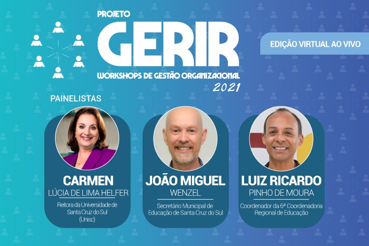 Três painelistas abordarão esse enfoque, a partir das 19 horas, com uma explanação individual, seguida de debate: a reitora da Universidade de Santa Cruz do Sul (Unisc), Carmen Lucia de Lima Helfer; o secretário municipal de Educação de Santa Cruz do Sul, João Miguel Wenzel; e o responsável pela 6ª Coordenadoria Regional de Educação, Luiz Ricardo Pinho de Moura. No conjunto das intervenções, a proposta do workshop é analisar como a educação em âmbito de escolas municipais, estaduais e de ensino superior ou particulares teve de se adequar a um novo formato, pressionada pela pandemia. E, a partir dos acertos ou dos eventuais insucessos verificados no ano passado, como esse setor deve se organizar para atingir metas e objetivos ao longo de 2021.