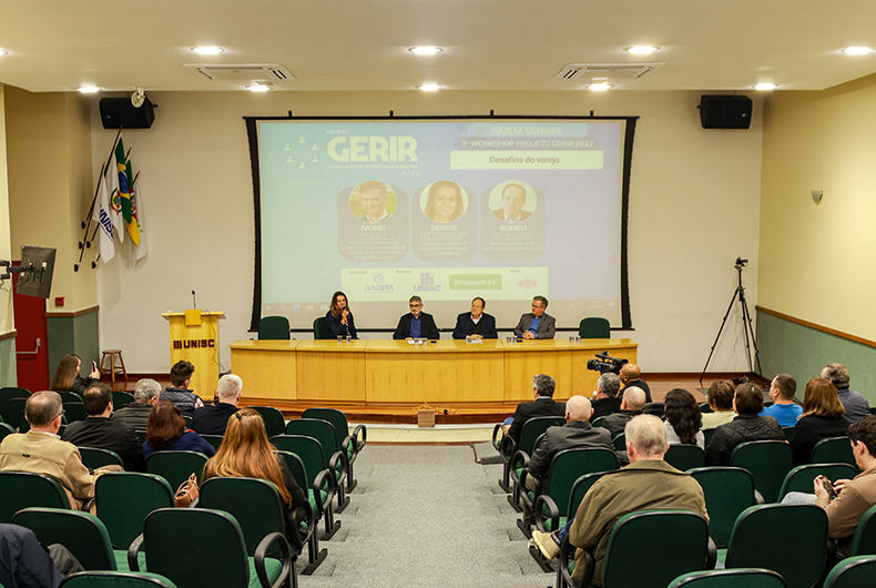 Os desafios enfrentados pelo setor do varejo, em realidades local, regional, estadual e nacional, foram o tema que norteou os debates e as reflexões na terceira edição do ano do Projeto Gerir – Workshops de Gestão Organizacional, realização da Gazeta Grupo de Comunicações. O evento foi realizado no auditório do Memorial da Universidade de Santa Cruz do Sul (Unisc), na noite da última quarta-feira, 26. Essa ação tem o patrocínio de Unisc e Unimed Vales do Taquari e Rio Pardo, com apoio da Cucas da Rosana.