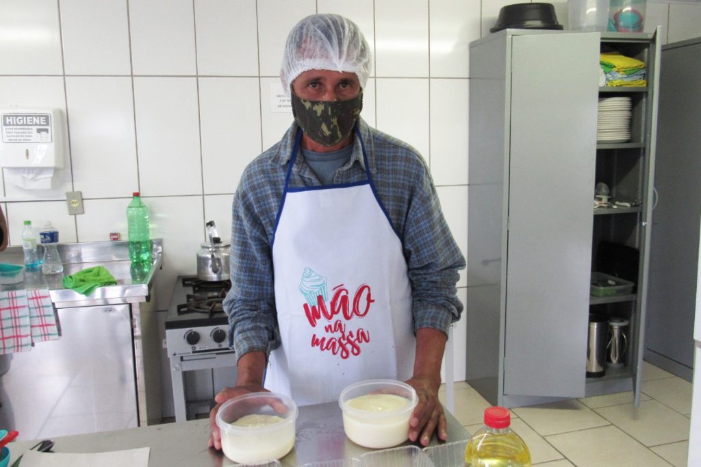 Na Padaria Comunitária Bom Jesus, que funciona junto ao Cras Integrar, Manuel Neres, 54 anos, era o único homem da turma. No dia em que levou os filhos pequenos – de 9 e 10 anos – para as atividades no centro de convivência, ficou sabendo da oficina e decidiu se inscrever. Com duas décadas e meia de experiência trabalhando no preparo de alimentos, ele acredita que sempre é possível aprender um pouco mais. “Quem diz que sabe tudo tá mentindo, sempre tem uma novidade”, disse.