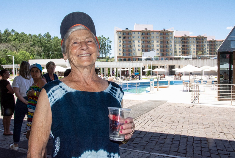 Acomodada em um dos assentos do restaurante, após o banho de piscina em uma temperatura de 40 graus, a aposentada Noeli Kipper, de 68 anos, não escondia a satisfação. “Que presente, que presente, que presente”, repetiu ela. Foi com essas palavras que, ao perceber a presença da prefeita de Santa Cruz do Sul, Helena Hermany, quis agradecer com um generoso abraço.