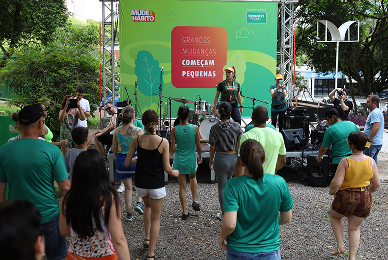O projeto Mude1hábito encerrou a programação de 2022 no último sábado com um evento na Praça Getúlio Vargas, no Centro de Santa Cruz. Liderada pela Unimed Vales do Taquari e Rio Pardo, a iniciativa tem como objetivo conscientizar a população sobre a importância de adotar uma rotina saudável no que diz respeito a alimentação, prática de exercícios físicos e saúde mental. Com todas as atrações gratuitas, os visitantes puderam participar de aulas de dança, receber orientações diversas e até mesmo testar um aparelho capaz de produzir suco natural com o esforço do usuário.