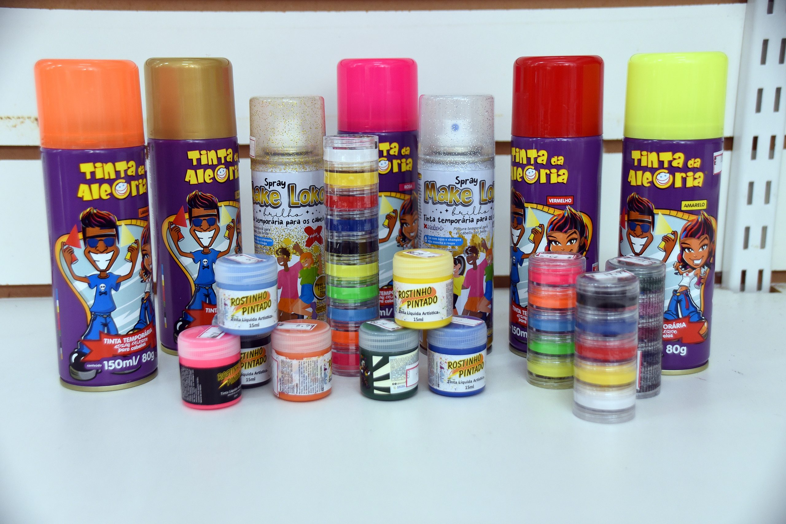 Para dar um toque final às produções, a loja conta ainda com tintas para cabelo e corpo, pedrarias para maquiagem e glitter em diversas cores. “Quem não quiser gastar com uma fantasia completa pode optar pelos acessórios. O importante é ir fantasiado com alguma coisa”, destaca Gabrielle.