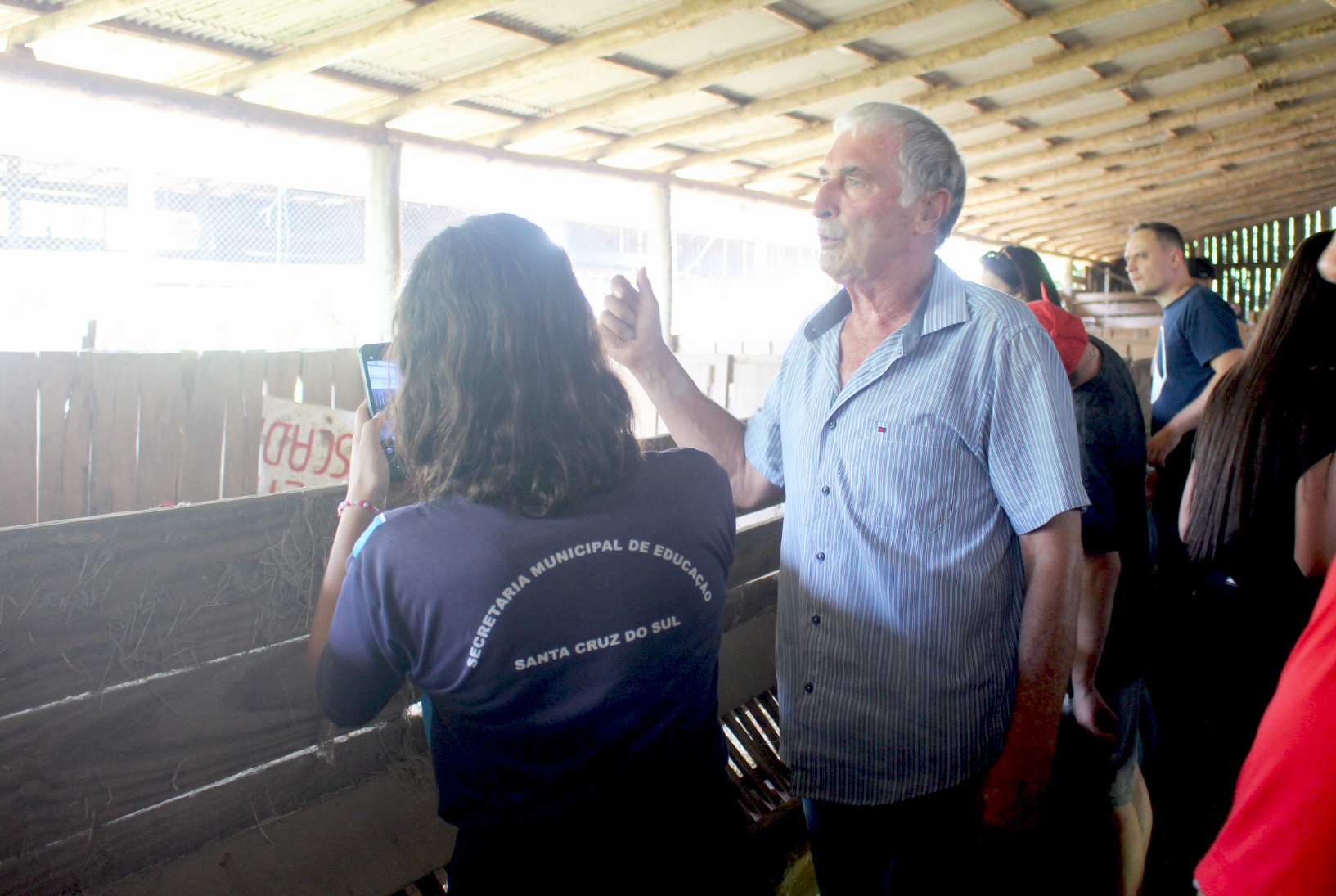 Atentos às explicações, alunos do 9º ano do Ensino Fundamental de escolas municipais situadas em comunidades do interior de Santa Cruz do Sul desembarcaram em Sobradinho nesta semana para obter conhecimento através de visitas de campo. Este é o segundo ano consecutivo em que o projeto Diversidade Rural na Escola, uma iniciativa da Secretaria de Educação de Santa Cruz do Sul, mobiliza estudantes e professores para, após o aprendizado em sala de aula e in loco, elaborarem projetos científicos e ações de diversificação rural, conforme a realidade escolar.
