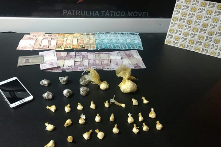No local foram encontrados dentro de uma lixeira 23 invólucros com cocaína e seis porções de maconha. Também foram localizados e apreendidos 48 gramas de cocaína, um telefone celular da marca Samsung e R$ 910. O proprietário do local, de 22 anos, e os clientes do bar, foram encaminhados para Delegacia de Polícia de Pronto-Atendimento (DPPA).