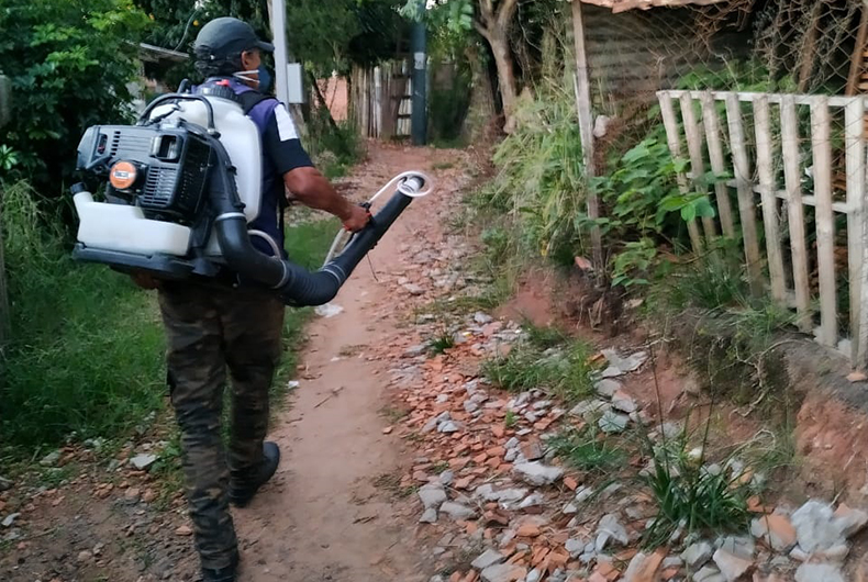 Devido à grande quantidade de casos confirmados de dengue e de focos do Aedes aegypti no Bairro Progresso, a Prefeitura, por meio da Vigilância Sanitária, iniciou, no fim da tarde desta terça-feira, 19, a primeira etapa de aplicação do inseticida que tem a finalidade de eliminar o mosquito transmissor da dengue, zika e chikungunya.