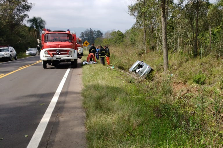 Quatro pessoas ficaram feridas após um acidente no quilômetro 10 da ERS-400, em Candelária, por volta das 10 horas deste domingo, 9. Conforme os Bombeiros Voluntários do município, o Corsa Hatch, com placas de Esteio, andava no sentido Sobradinho/Candelária e tentou fazer uma ultrapassagem, mas foi fechado por outro veículo. Ao frear, o condutor acabou perdendo o controle da direção e o carro caiu em um barranco na lateral da pista.