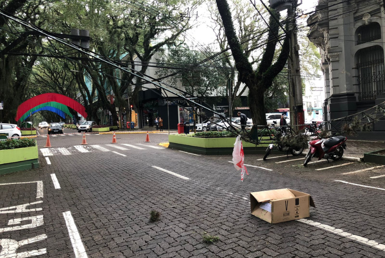 Um dos arcos da Rua Marechal Floriano, no Centro de Santa Cruz do Sul, caiu na manhã desta segunda-feira, 8. O fato foi registrado próximo ao entroncamento com a Rua Júlio de Castilhos. A Guarda Municipal bloqueou o trânsito no cruzamento entre as duas vias. O desvio acontece pela Júlio de Castilhos.