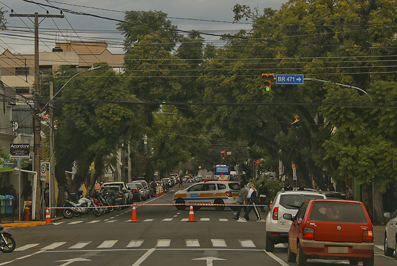 A queda de um galho causou a interrupção do trânsito na Rua Tenente Coronel Brito, no Centro de Santa Cruz do Sul, no fim da manhã desta terça-feira, 8. A situação ocorreu na quadra entre as ruas 28 de Setembro e Júlio de Castilhos.