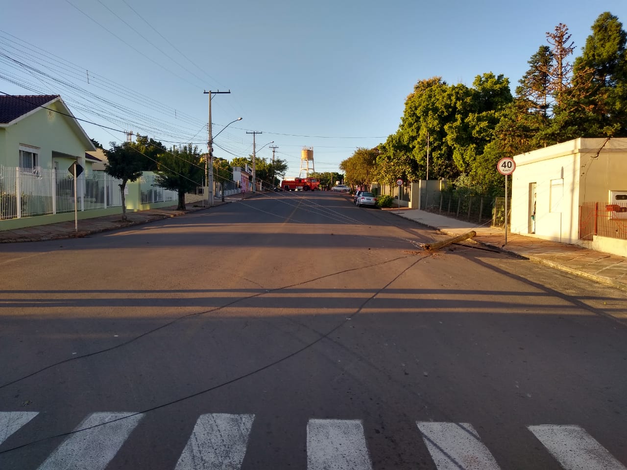 Um possível acidente provocou a queda de três postes no cruzamento das Ruas Ernesto Wild com Eduardo Zinn, em Vera Cruz. O trânsito está interrompido no local na manhã desta terça-feira, 27, ainda sem previsão de liberação.