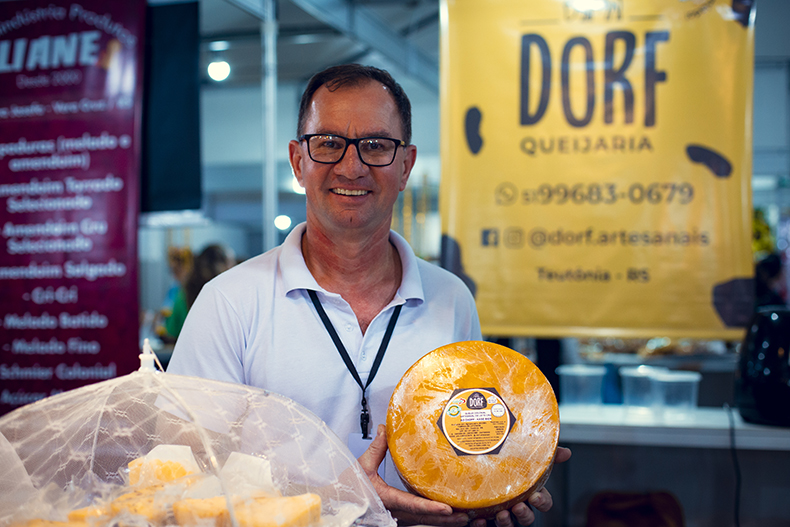 Aliás, quem quiser provar a iguaria, pode ir até o estande da Dorf Queijaria. Por lá, o visitante também encontra o tradicional queijo colonial, parmesão, sem lactose e outros sete tipos temperados. Ainda, sobre o Queijo de Cerveja, Jakson salienta que o teor alcoólico do produto é zerado, pois o chope precisa ser pasteurizado e concentrado, para intensificar ainda mais o sabor do queijo. E ele adianta: “Estamos preparando surpresas para o ano que vem”, finaliza o proprietário.