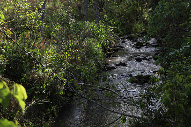 Royer diz que a família sempre se preocupou com a preservação da vegetação ao longo do riacho, para evitar a queda das encostas e o assoreamento. Para tanto, eles plantaram dezenas de árvores e outros arbustos menores no local. “Eu tenho uma estufa onde faço as mudas das flores e espécies nativas. Se tem espaço, a gente vai plantando.”