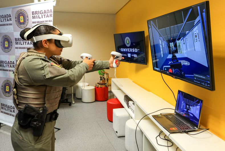 Uma tecnologia inovadora passou a ser utilizada de forma inédita no Rio Grande do Sul para auxiliar no treinamento de policiais militares. Óculos de realidade virtual desenvolvidos por estudantes universitários estão sendo incorporados na preparação de agentes da Brigada Militar para aperfeiçoar o atendimento às ocorrências. Simulando diversos cenários e atividades ligadas à rotina policial, a ferramenta pode ajudar no enfrentamento de situações complexas.