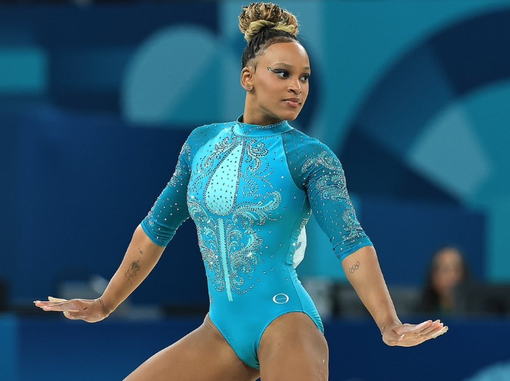 “Ela ganhou o ouro no solo em Paris-2024, derrotando a ginasta mais condecorada do mundo, Simone Biles. Durante a cerimônia de premiação, Biles e sua companheira ginasta norte-americana Jordan Chiles se curvaram para a brasileira, um gesto que viralizou e se tornou um emblema da Olimpíada deste ano”, escreveu a rede britânica, relembrando a icônica foto protagonizada por Rebeca, Biles e Chiles no pódio.