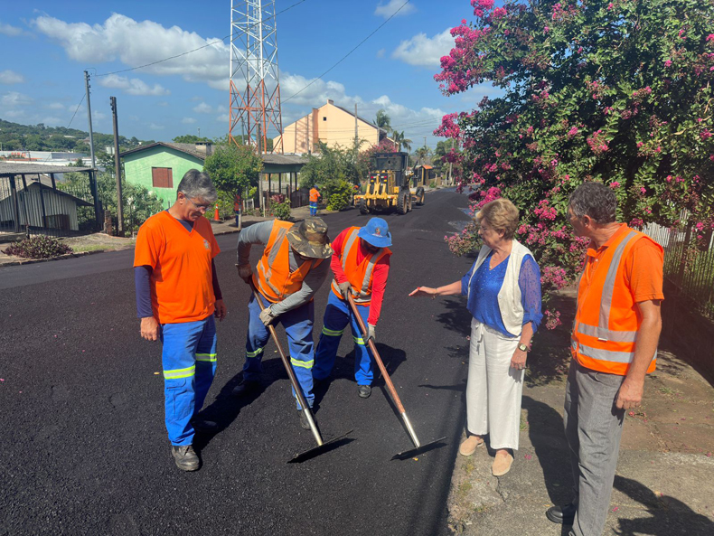 A prefeita Helena Hermany foi conferir de perto o andamento da obra, no Bairro Schulz, nesta manhã. O serviço foi iniciado no dia anterior por operários da Seoi. No local, a prefeita conversou com os servidores municipais e moradores. Helena reforçou o compromisso de sua gestão para a manutenção e qualificação das vias do município. “Quero que nossa população desfrute de ruas melhores para transitar. Quando ando pela cidade, estou sempre avaliando a situação de nossas vias e vendo onde podemos interferir para aprimorar as condições”, explicou.