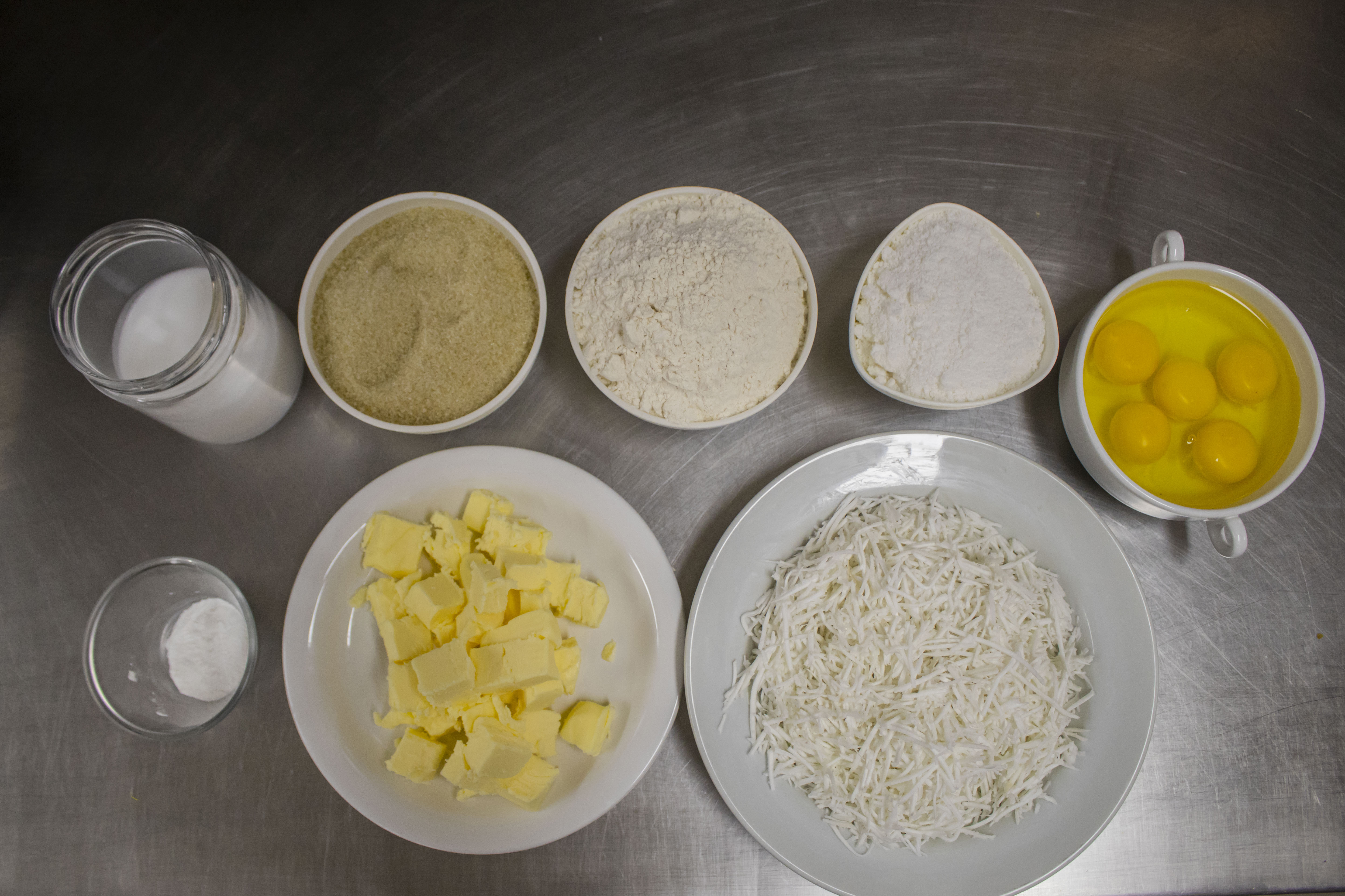 1. Na batedeira, bata a manteiga com açúcar por dois minutos, em velocidade baixa a média. Acrescente os ovos, um a um. Misture, em uma tigela, a farinha, o fermento e o sal. Após acrescentar os ovos, com a ba-tedeira ligada, intercale o leite de coco com a mistura da farinha, fermento e o sal, adicionando aos poucos. Esse processo deve levar um minuto. Então, desligue a batedeira e finalize com o coco ralado e a tapioca em flocos.