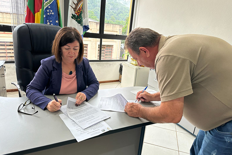 A prefeita Sandra Backes assinou nesta terça-feira, 15, o contrato com a empresa Zanco Construtora Ldta, vencedora do processo licitatório que prevê a reconstrução das pontes Bismarck e Rio Pequeno. Junto com o contrato, ocorreu também a assinatura da ordem de início para as obras.