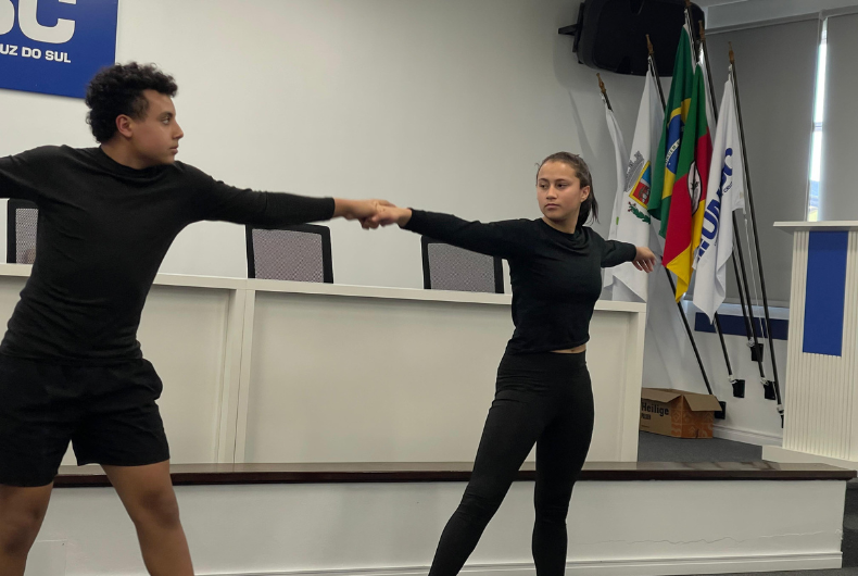 Na abertura do encontro, os alunos Sheila Marques e Rodrigo Escobar dos Santos Júnior – respectivamente, do 9° ano e do 7º ano da Escola Municipal de Ensino Fundamental Nossa Senhora da Glória, de Sinimbu – realizaram uma apresentação encenando, por meio de dança, as fases de um casal em uma relação tóxica, com momentos de carinho e também de agressividade. Foram acompanhados da professora Iolanda Rodrigues.