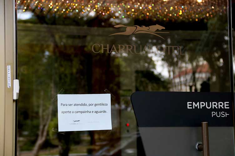 O Charrua está funcionando a portas fechadas. O hotel instalou uma campainha para atender quem chega. A medida foi tomada porque parte do quadro de funcionários está dispensada, em férias ou fazendo banco de horas em negativo. A porta fechada também atende a questões de segurança, por causa do menor número de pessoas circulando no Centro.